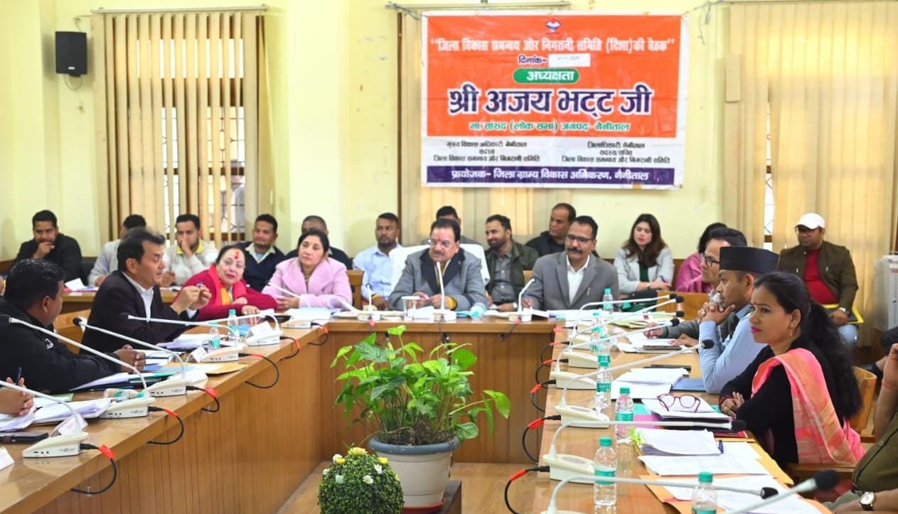सर्किट हाउस काठगोदाम में आयोजित बैठक में सांसद अजय भट्ट ने केंद्र सरकार की योजनाओं की समीक्षा करते हुए कहा कि दिशा बैठकों की केंद्र से मॉनिटरिंग होती है, इसलिए अधिकारी जिम्मेदारी से कार्य करें। पीएमजीएसवाई, प्रधानमंत्री आवास योजना, उज्ज्वला, स्वच्छ भारत मिशन, कृषि सिंचाई योजना, समग्र शिक्षा, मातृ वंदना, पीएम मत्स्य योजना और पीएम सूर्य घर जैसे कार्यक्रमों की विस्तृत समीक्षा की गई।