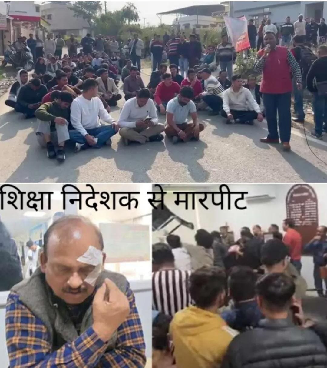 शिक्षा निदेशक से मारपीट प्रकरण गरमाया, शिक्षक संगठनों का धरना शुरू!