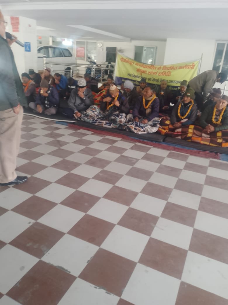 सिंचाई विभाग एवं लोक निर्माण विभाग उत्तराखंड के सेवानिवृत्त कार्यप्रभारित से नियमित कर्मचारियों द्वारा पेंशन बहाली की मांग को लेकर चल रहा आंदोलन आज 18 दिसंबर 2025 को भी जारी रहा। यमुना कॉलोनी स्थित प्रमुख अभियंता कार्यालय परिसर में संयुक्त संघर्ष समिति के बैनर तले धरने का 77वां दिन तथा क्रमिक अनशन का 67वां दिन पूरा हो गया।